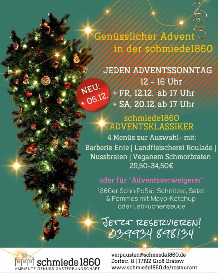 Seit Mai 2020 öffnen wir die Türen unserer alten Schmiede von 1860 in Groß Dratow – damit ihr eine fantastische Auszeit vom Alltag erlebten könnt. Direkt am Müritz-Nationalpark gelegen, verbinden wir hier Gastfreundschaft, Kulinarik und Natur zu einem besonderen Erlebnis.